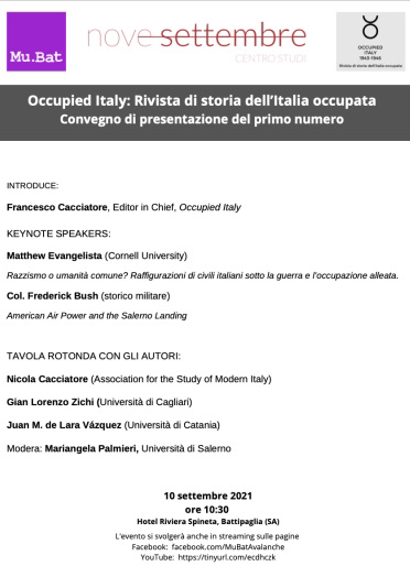 Launch of new journal, Occupied Italy, 10 September 2021, Battipaglia, Italy