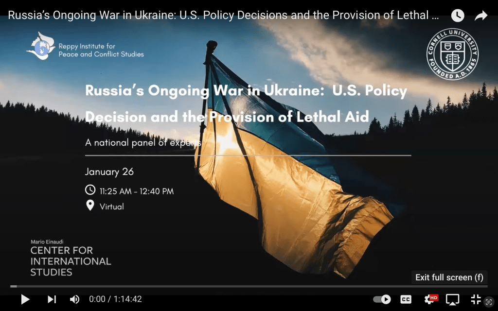 Russia’s Ongoing War in Ukraine: U.S. Policy Decisions and the Provision of Lethal Aid, watch here.