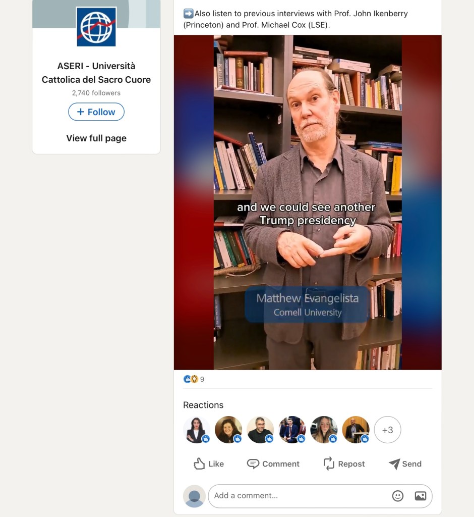 Comments on US elections after Iowa Republican primary, Catholic University of Milan, Italy, 20 January 2024.